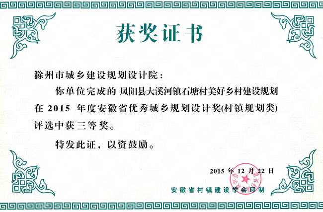 明光市中心城區(qū)規(guī)劃獲獎證書